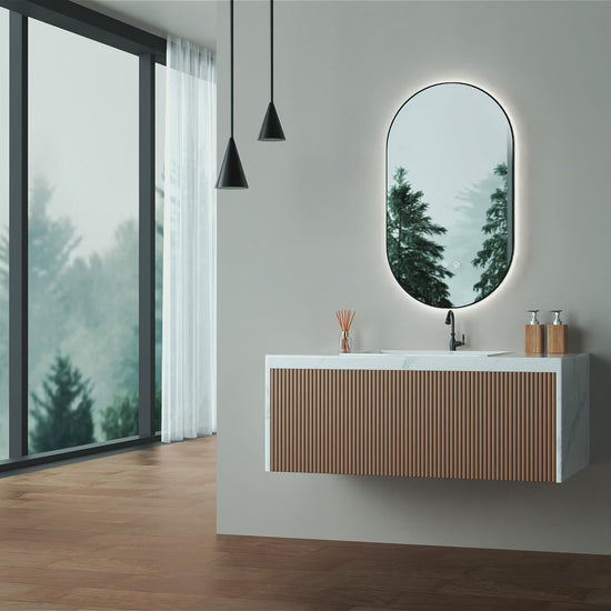 Badkamerspiegel Ovaal Zwart 50 x 90 cm – Anti-Condens & Led Horizontaal/Verticaal